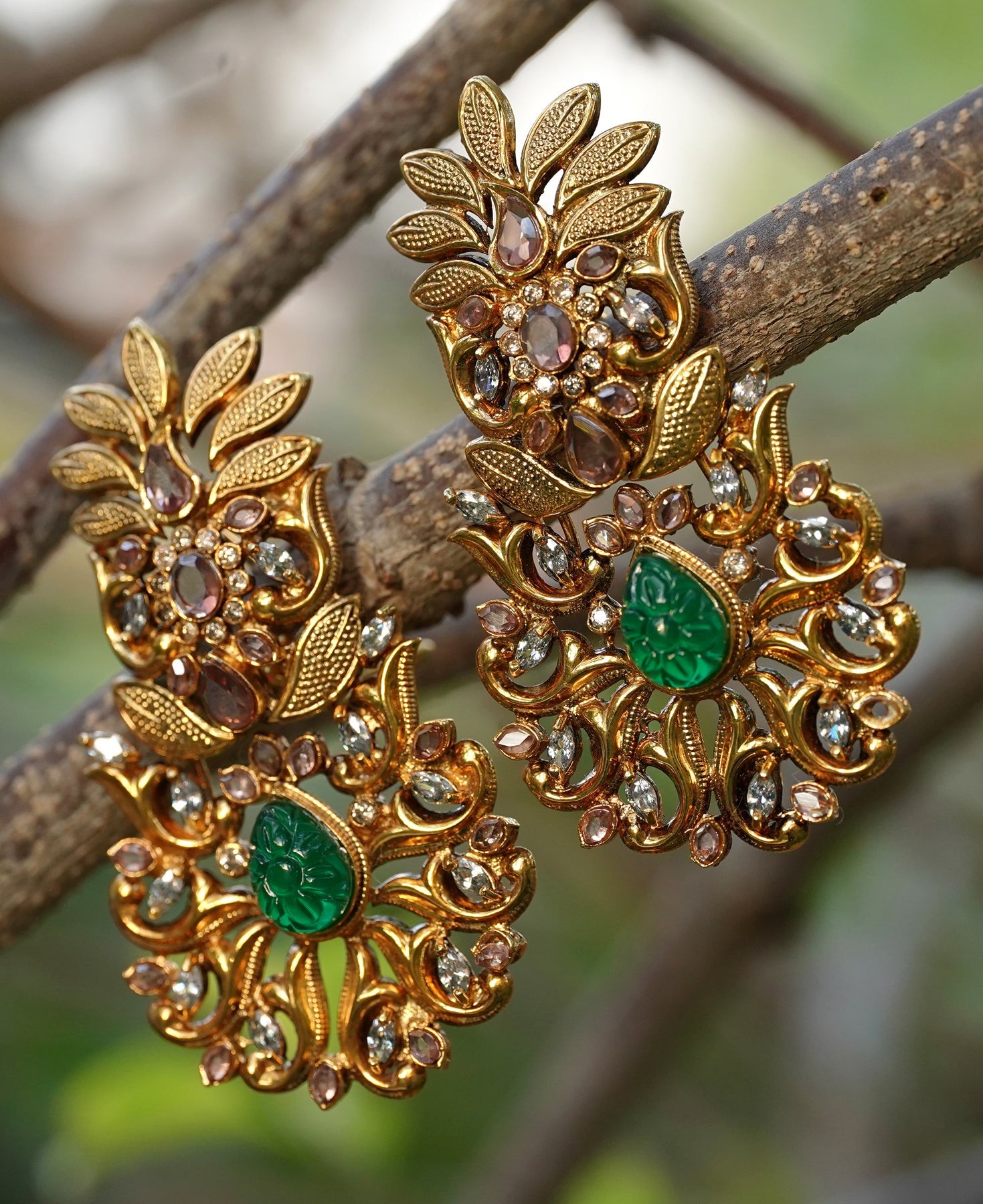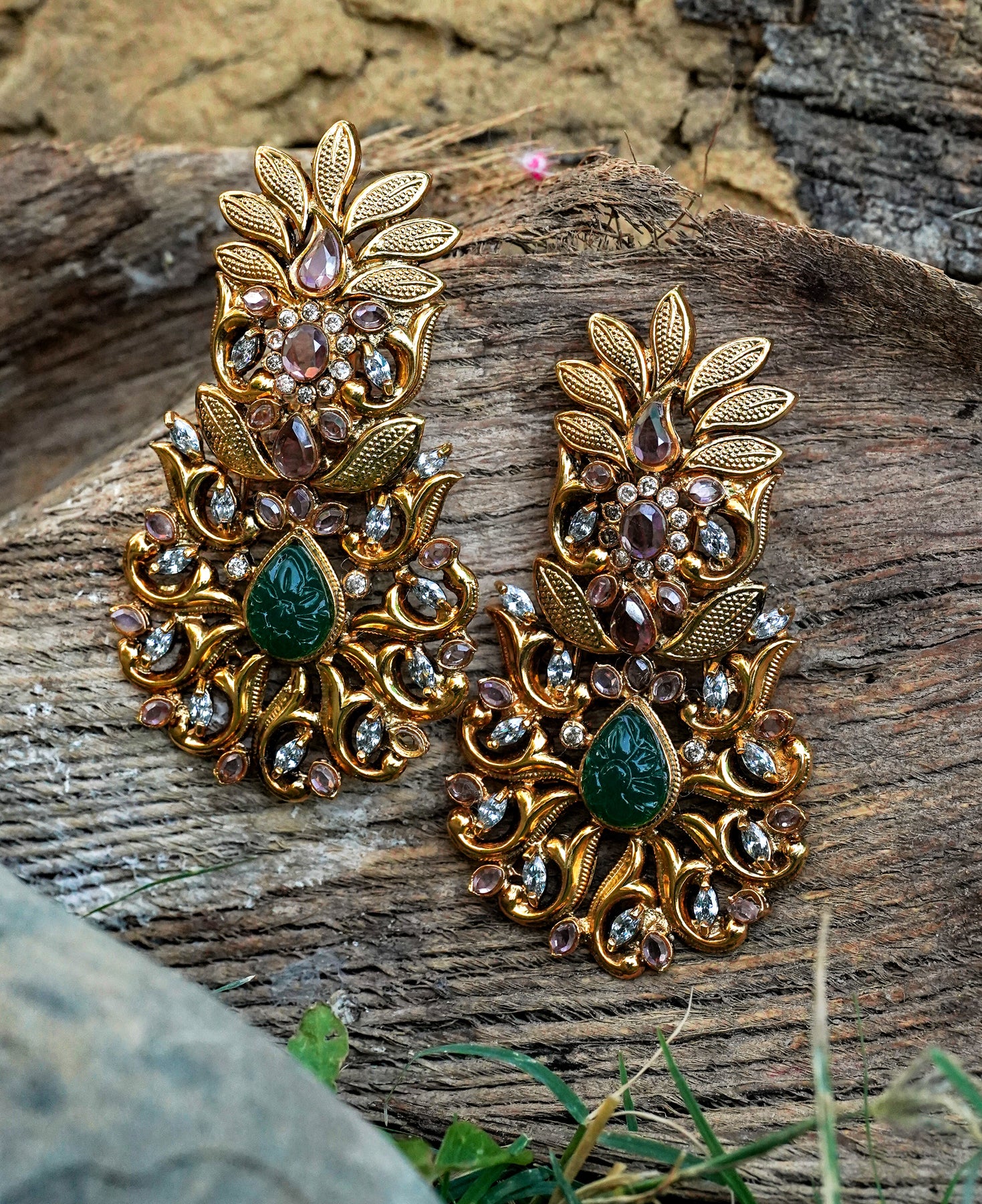Stones: Grey colored zircon polkies and carved jadeites.