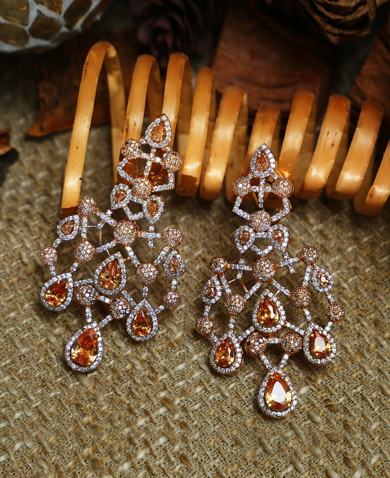 Stones: Champagne and clear zircons.
