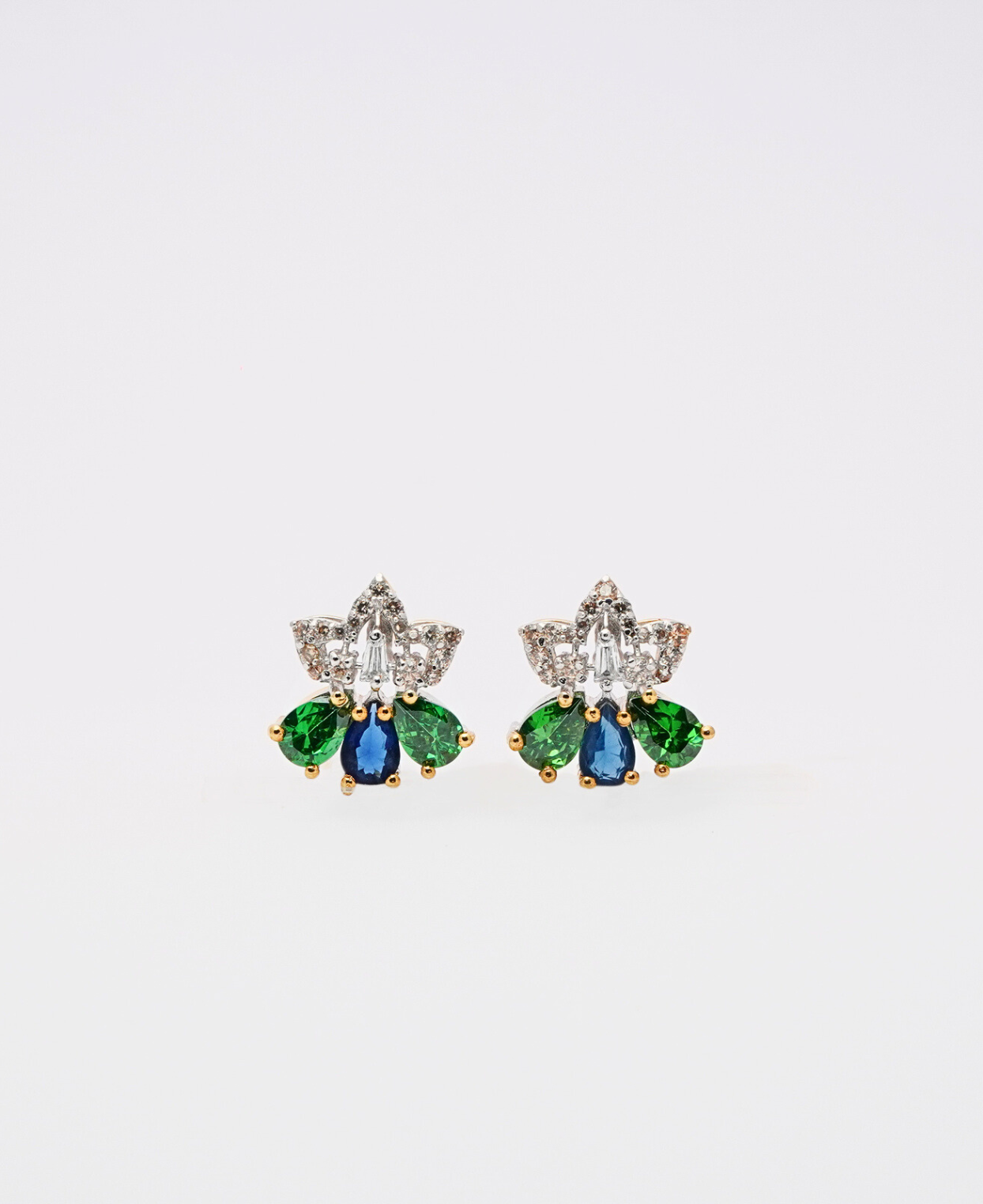 Stones: Clear zircons and peridot and sapphire colored zircons.