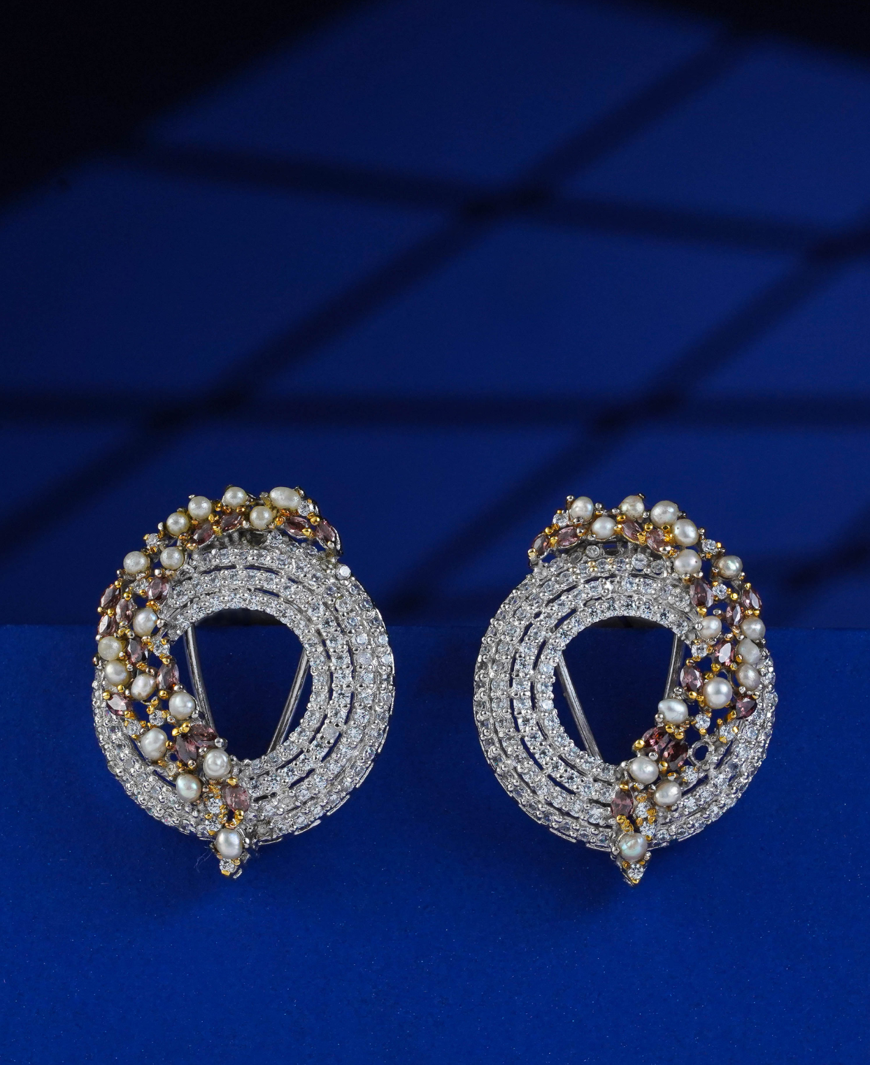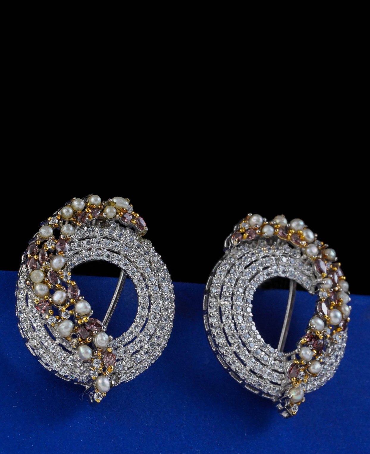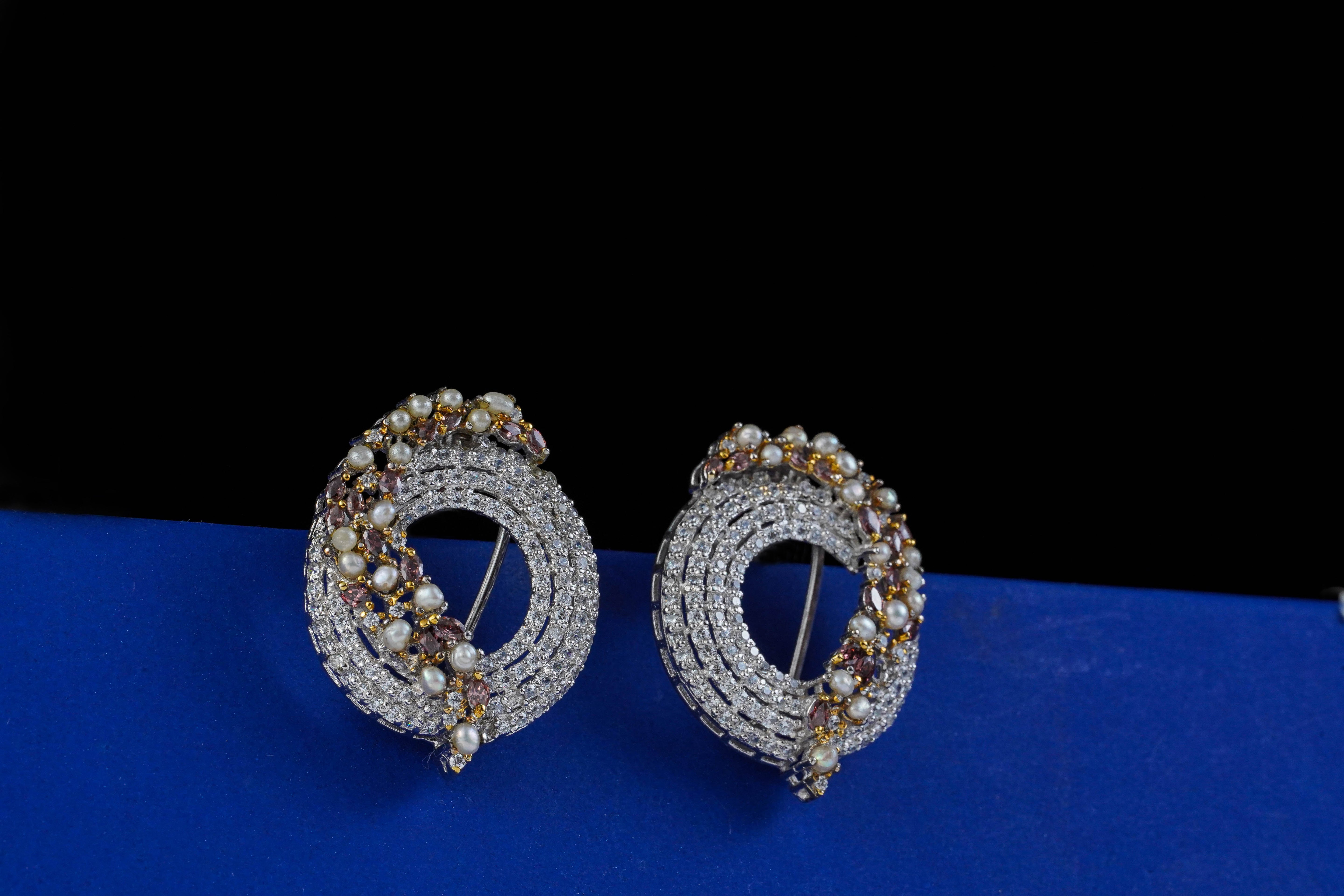 Stones: Clear and smoky colored zircons with cultured pearls.