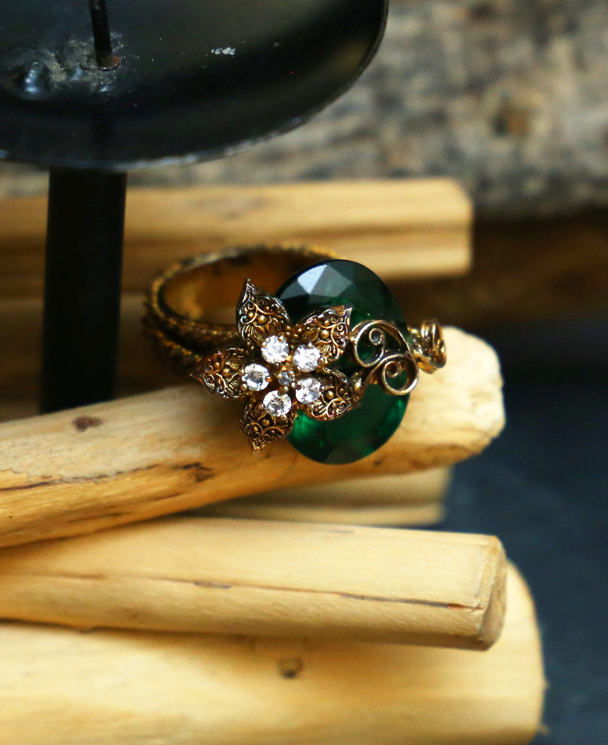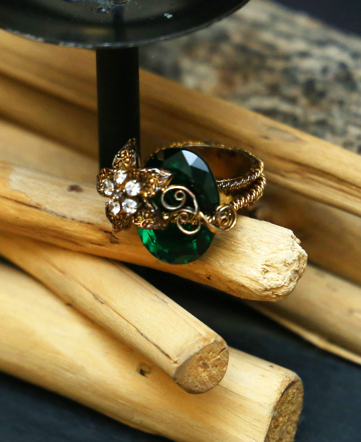 Green Chunky Twisted Wire Ring