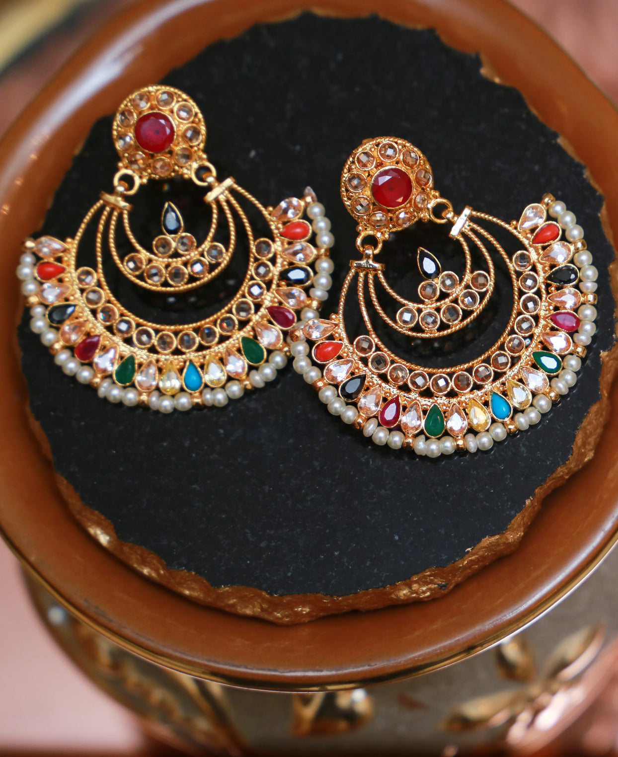 Stones: Semi precious Naurattan stones with Cultured pearls