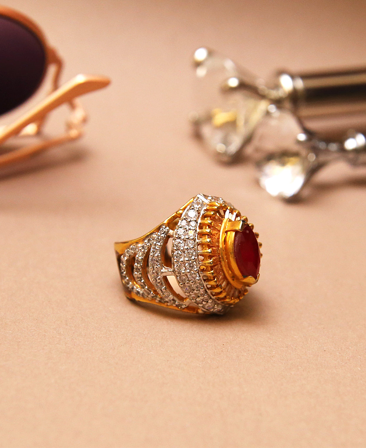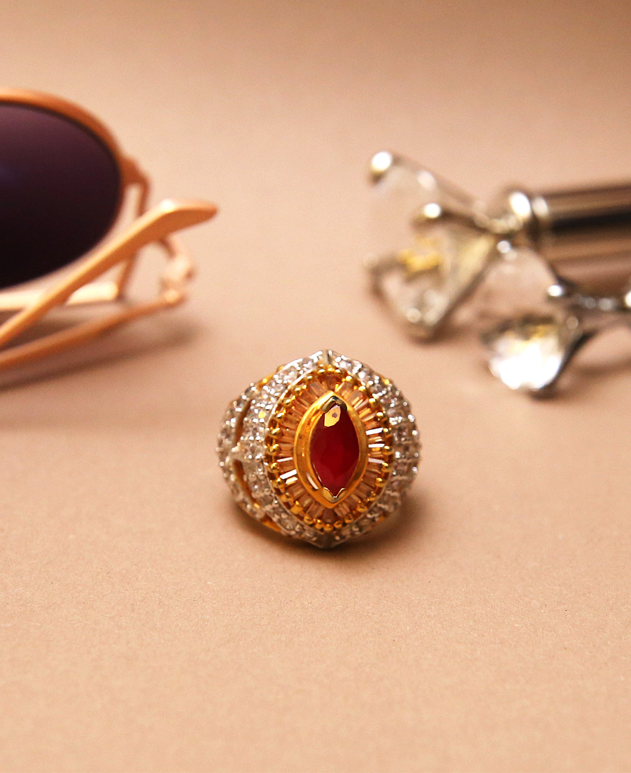 Stones: Clear and champagne colored zircons alongwith a treated ruby.