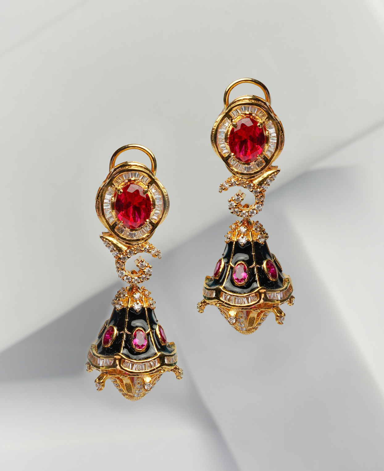 Stones: Clear Zircons with Red colored Zircons and Black Meena.